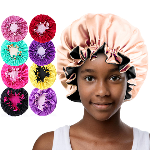 도매 더블 레이어 솔리드 밝은 색상 아이 탄성 수면 모자 끈기 Selvedge 새틴 헤어 보닛
